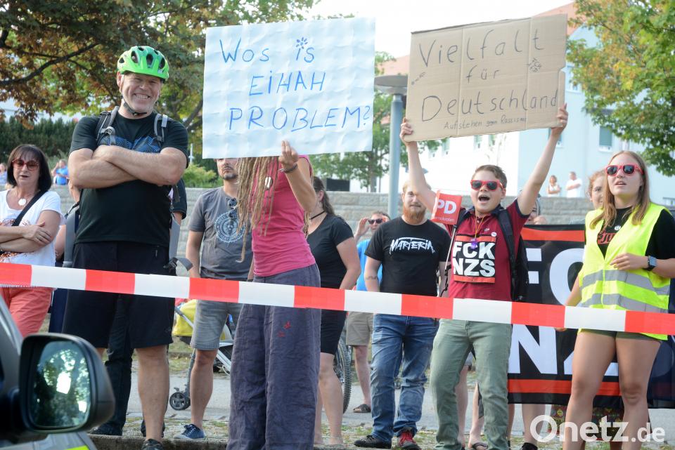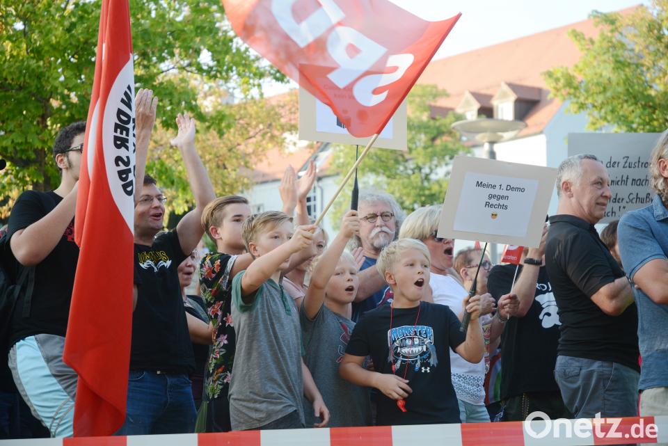 Die wiederum reagierten empört. Einige, ebenfalls mit Transparenten, suchten den Kontakt zu den Gegendemonstranten. Auf Provokationen folgte ein lautstarkes „Nazis raus“, „Schämt euch“ und „Weg mit der AfD“. Die Polizei, die mit 20 Mann präsent war, reagierte besonnen und ließ nichts aufkommen.