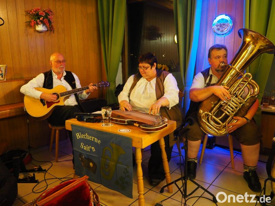 Die Zupfer-Moidln wurden an dem Abend beim Walbert erstmals von Christian Müller aus Waldkirch mit seinem Akkordeon begleitet. Egal ob es das "Viereckete Gsicht" war, "Schnucki Putzi" oder "Wenn oina ins Büro göith", die Texte waren angemessen lustig. Die "Zwoa Schneidig'n", Christian Müller und Manfred Wild, ergänzen sich nicht nur musikalisch perfekt sondern auch beim Erzählen von Witzen. Da erzählten sie vom "Bubikopf", von den "Traurigen Boum" oder vom "Schnupftabak". Die "Blecherne Sait'n" aus Schnaittenbach waren kurzfristig für eine Gruppe eingesprungen. Und die waren kein Ersatz sondern eine positive Bereicherung. Schön dabei, dass man sich als Musikant auch selber auf die Schippe nehmen kann. Seit 20 Jahren ist die wohl ungewöhnlichste Instrumentenkombination nicht nur in der Oberpfälzer Volksmusikszene unterwegs: Ingrid Gericke und Sepp Donhauser stehen für zarte Zither- und Gitarrenklänge. Das Außergewöhnliche: Die beiden werden ergänzt von Franz Gericke, der seiner mächtigen Tuba butterweiche Klänge entlockt und die beiden Saiteninstrumente nie in den Hintergrund drängt. Am Ende gab es Blumen für die charmanten Zupfer-Moidln.