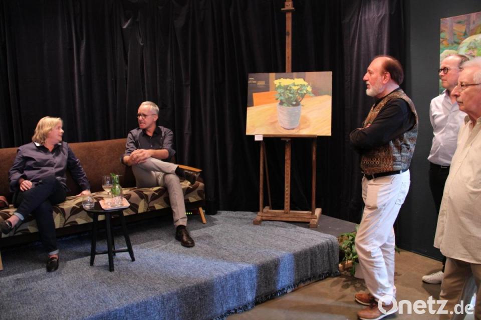 Auf die Fragen der studierten Kunsthistorikerin Silke Winkler erzählte der Autodidakt über sich selbst, seine Leidenschaft zum Malen und nahm dabei seine ausgestellten Werke unter die Lupe. "Ich male aus dem Bauchgefühl heraus", bekannte er. Als Kind sei er mit dem Geruch von Ölfarben in der Nase aufgewachsen, da sein Vater Manfred ebenfalls Maler ist. So habe er bereits in seiner Kindheit mit dem Malen begonnen. Dem in der Kunst mit vielen Vorurteilen behafteten Metier Landschaftsmalerei widmet er sich, weil man hier die Menschen nicht beeindrucken kann. Das möchte er auch nicht. Er will vielmehr den Betrachter mental berühren, mit der Landschaft und der Stille.