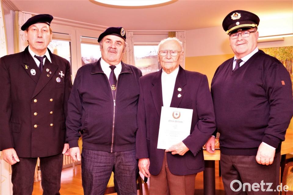 So machten sich Kreisvorsitzender Heinrich Scheidler, Vorsitzender Engelbert Eckart und Kassier Henry Rehfeldt auf den Weg ins Altersheim. Die Urkunde hat den Wortlaut: "Als Danke für seine dem Vaterland geleisteten treuen Dienste als Frontsoldat im Weltkrieg und für seine Verdienste in unserem Verband." Karl ist in der Soldatenkameradschaft das einzige Mitglied, das im Zweiten Weltkrieg an der Front war. Am 15. Mai 1941 wurde Karl nach Königsberg eingezogen. Eigentlich sollte er zur Luftwaffe, doch dort es gab Personalüberhang. So wurde er zum Feldinfantristen ausgebildet und später, im März 1942, verwundet. Nach der Genesung ging es nach Tunesien, wo er sich eine weitere Verletzung zuzog. Im Mai 1943 kam Karl in US- Gefangenschaft in Orlando. Im März 1946 wurde er nach England verlegt. Im März 1947 wurde Karl aus der Kriegsgefangenschaft in Munster entlassen. Im August des gleichen Jahres begann er eine Polizeiausbildung bei den Amerikanern in Grafenwöhr, und im Mai 1948 trat Karl seinen Dienst bei der bayerischen Polizei in Neustadt/WN an. Neben zahlreichen Auszeichnungen des BSB ist Karl Ehrenmitglied in der Kameradschaft.