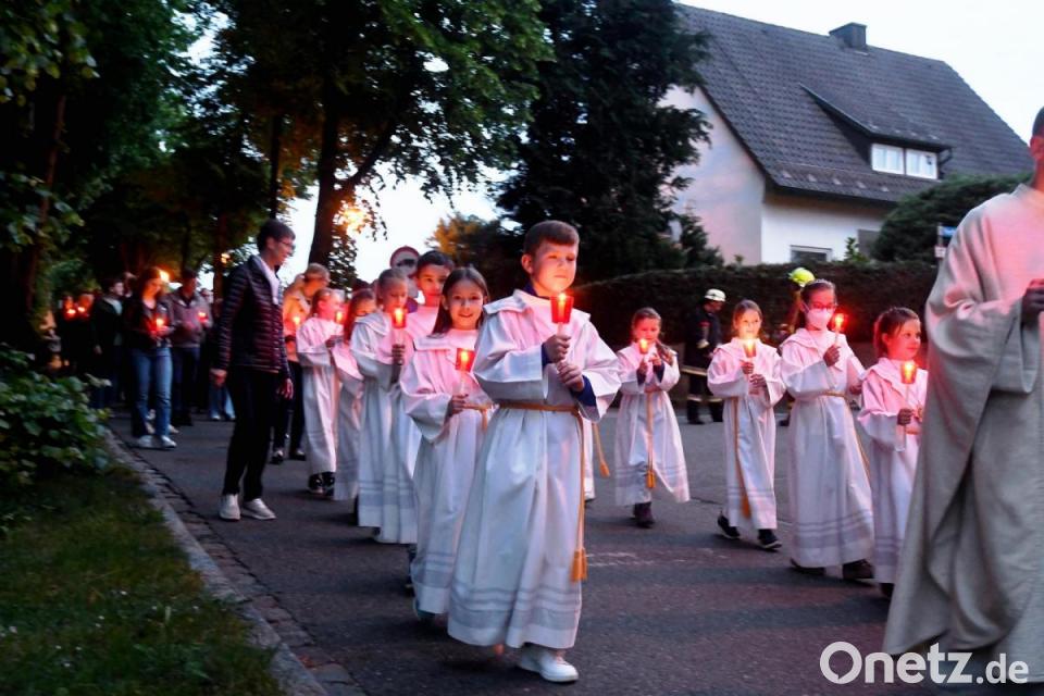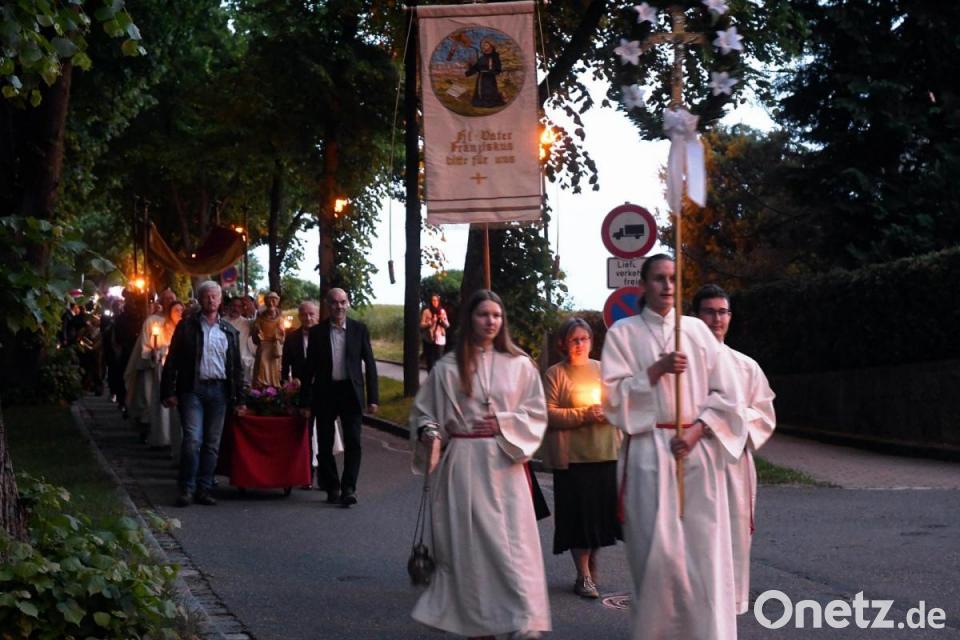 Bei einbrechender Dunkelheit bewegt sich eine lange Lichterprozession mit der Statue des Heiligen aus Cantalice und der Dritte Orden mit der Standarde, den Kommunionkindern in ihren Festgewändern und der Stadtkapelle unter Leitung von Karl Wildenauer durch die illuminierte Felixallee.