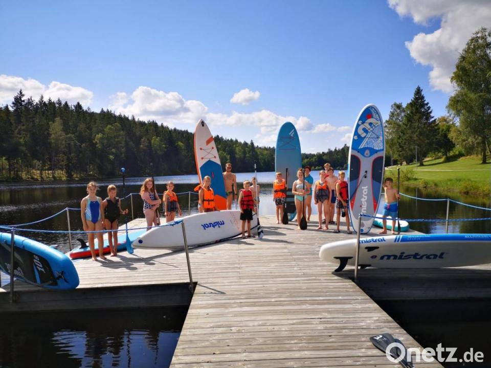 Einen sportlich, spaßigen Nachmittag verbrachten 16 Kinder mit dem Neustädter Kinderferienclub am Gaisweiher. Unter der Leitung des DJK Jugendreferenten Simon Staschefski glitten die jungen Leute bei sonnigem Wetter mit den Bords übers Wasser. Der erste Kurs Anfang August musste wegen Regens abgesagt werden. Erfolgreich hofften die Verantwortlichen Tanja Kippes und Simone Scherb trotz niedriger Wassertemperatur auf die „Standhaftigkeit“ der Kinder – und wurden nicht enttäuscht. Nach einer kurzen Einweisung klappte das Paddeln im Knien und im Stehen bei allen hervorragend. Nur einmal, ganz am Anfang gab es einen unfreiwilligen Abgang. Die Sportler wollten gar nicht mehr am Steg anlegen und so verzögerte sich das Ende der Aktion um fast zwei Stunden.