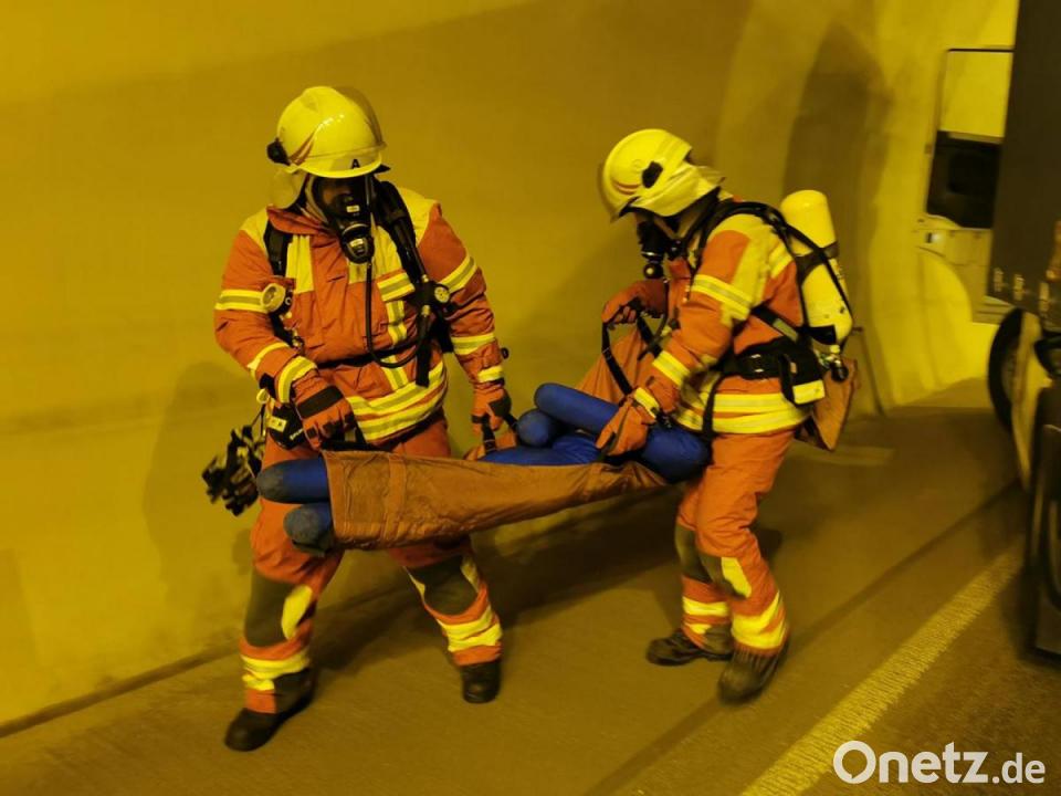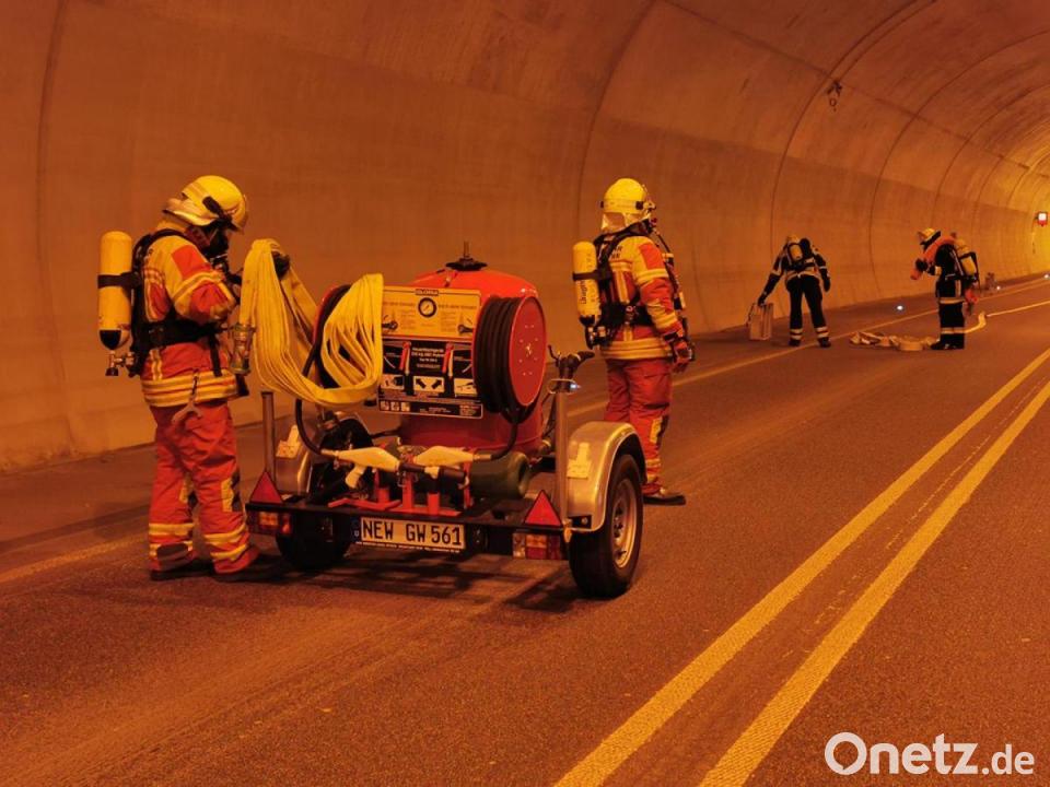 Der Alarm der Brandmeldeanlage sei gegen 18 Uhr erfolgt und habe die Neustädter Wehr alarmiert. "Danach erfolgte aufgrund der umfassenden Erkundung eine Erhöhung des Einsatzstichwortes", heißt es in der Mitteilung. In dem als Übungsobjekt genutzten Lkw sei der Fahrer – eine Übungspuppe – nach der Kollision mit der Tunnelwand eingeklemmt gewesen und es habe zu brennen begonnen, so das durch eine Nebelmaschine unterstützte Szenario. "Die Übung wurde natürlich geheim gehalten, so dass möglichst realitätsnah Personaleinsatz, Gerätschaften und alle sicherheitsrelevanten Komponenten des Tunnels von den Feuerwehren getestet werden konnten", heißt es in der Pressemitteilung. Auch ein mobiler Tunnellüfter sei im Einsatz gewesen.