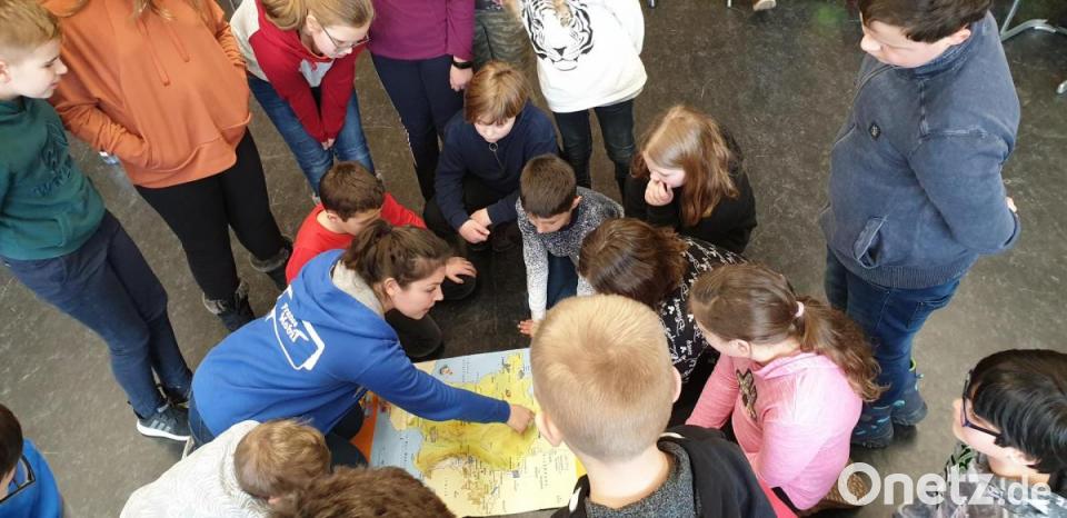 Dabei verständigte sie sich mit den Schülern ausschließlich auf Französisch und konnte ihnen auf spielerische Weise einige französische Wörter und Sätze beibringen. Das Staunen war groß, als die Schüler erkannten, dass sie die Französin selbst ohne Französischkenntnisse verstehen und ihr sogar auf Französisch antworten konnten. Mit Hilfe von Bildern, Musik einem Würfel und einem Dominospiel lernten die Schüler neben Zahlen und Tiernamen, sich auf Französisch zu begrüßen und sich vorzustellen. Dabei waren Schnelligkeit, Körpereinsatz, Geschicklichkeit und ein bisschen Glück gefragt, so dass die Schüler hoch motiviert und mit Begeisterung bei der Sache waren. Nach kurzweiligen 45 Minuten verabschiedeten sich die Schüler mit einem einstimmigen „Au revoir“ bei Facon und können nun dank der erlebten Sprachanimation die für sie richtige Wahl der zweiten beziehungsweise dritten Fremdsprache treffen.
