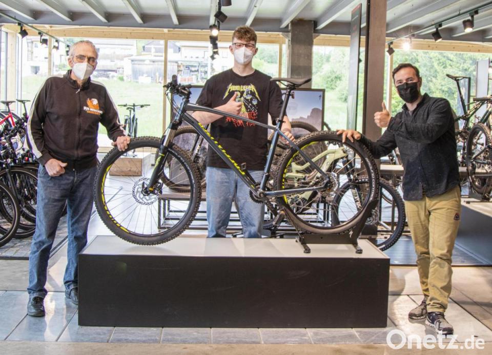 Durch Corona war die Übergabe des zweiten Rades erst jetzt möglich. Und Oliver Roy trifft in den Räumen des Fahrradladens eine Entscheidung: Das zweite von ihm gewonnene Mountainbike spendet er dem Verein. Ludwig Fritsch und Willi Merkl, Vorsitzender des Basketball-Clubs, waren überrascht von Olivers Entscheidung. Nun haben sie beschlossen, dass das Mountainbike noch einmal beim Mittellinien-Wurf zur Verlosung gebracht wird. Übrigens war Oliver Roy der erste seit fünf Jahren, der nicht nur das Losglück hatte, sondern auch noch von der Mittelinie traf.