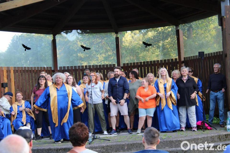 Es war eine Premiere: „Hope and Joy“, der bekannteste Gospelchor der nördlichen Oberpfalz, gastierte am Donnerstag erstmals bei einer Sommerserenade in der Freizeitanlage. Die Stadt hatte das Ensemble nach dem fulminanten Auftritt in einem Benefizkonzerts in der Wallfahrtskirche St. Felix im Januar auch erstmals engagiert. „Der Chor bringt eine besondere Stimmung dorthin, wo wir nicht durch Mauern beschränkt sind“, war Bürgermeister Sebastian Giering bei der Begrüßung sicher.
