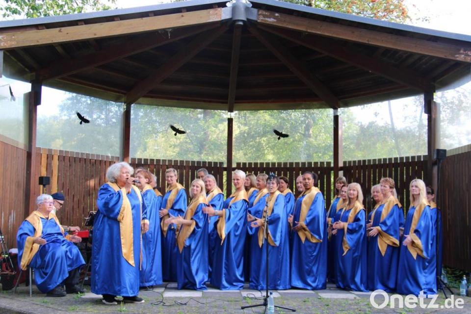 Aber egal: Die Fans, von denen sehr viele gekommen waren, scharten sich um die Bühne und genossen ein abwechslungsreiches Programm, für das Chorleiterin Remona Fink verantwortlich war und das sie mit vielen Soloeinlagen mit ihrer souligen Stimme bereicherte. Mit „This Train“ zogen die Sängerinnen und Sänger in ihren blau-goldenen Roben auf die Bühne. Bekannte Titel wie „Lean on me“, „Amen“, „Amazing Grace“ oder „I will follow him“, dem Hit aus „Sister Act“ wechselten mit ruhigeren Stücken wie „I am not forgotten“ oder „Mighty Wind“ ab. Zu jedem Stück gab es eine andere Choreografie, die bald auf das klatschende und mitsingende Publikum übersprang.