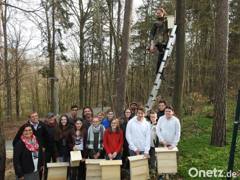 Beim abschließenden „Friday for future“ präsentierten die jungen Wissenschaftler ihre Forschungsergebnisse. Mit Förster Andreas Arnold, Tobias Knauer von der Handwerkskammer und Gerhard Witt vom Oberpfälzer Waldverein hängten sie die ersten Vogel- und Fledermaushäuschen auf.