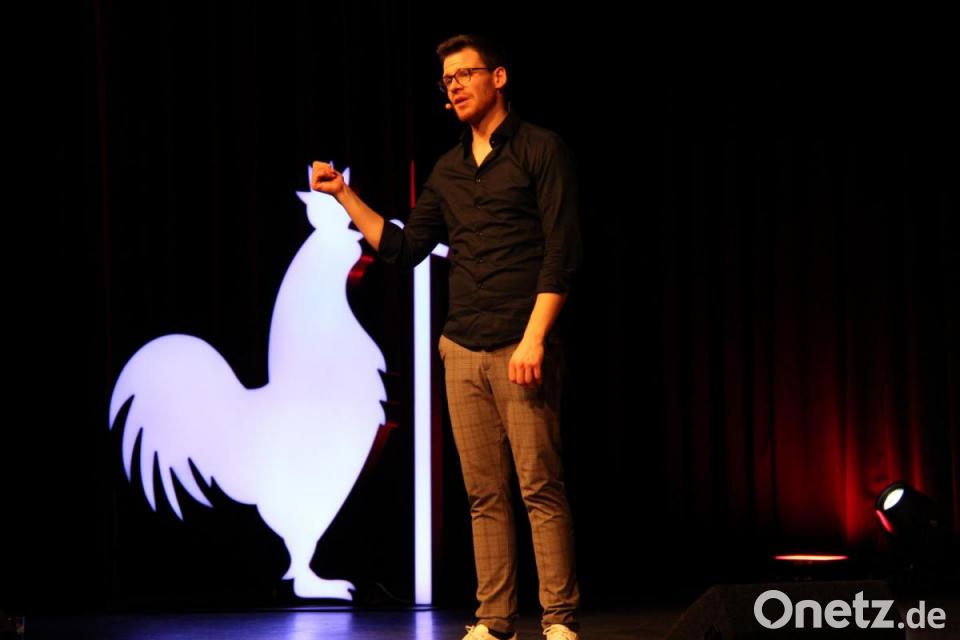 Beim Aufeinanderprallen der Welten von Stadt und Land verrät Frank seine Heimat nicht. Im Gegenteil: Die Menschen vom Land kommen deutlich besser weg als die Stadtneurotiker mit ihrer Besserwisserei, ihrem Small Talk und Photoshop-Angeberei und vor allem ihrer Rücksichtslosigkeit. Dann geht er wieder heim in seinen Bayerwald. Ohne Bachelor, mit gescheiterter Opernkariere, als arbeitsloser ausgebildeter Schauspieler und Single – und das mit 25. Die Krise ist umfassend: "Dumm, einsam, obdachlos". Herzlich willkommen in Hutthurm! Doch jeder sollte versuchen, seinen Traum zu leben, sich auch mal ins Ungewisse zu stürzen, so wie er in die Kleinkunst. Man müsse nur Menschen finden, die so einen Weg mit einem gehen. Das hat das Publikum an diesem Abend in der Stadthalle getan.
