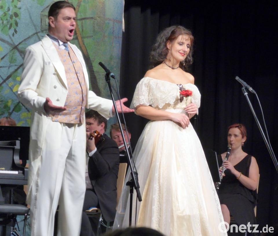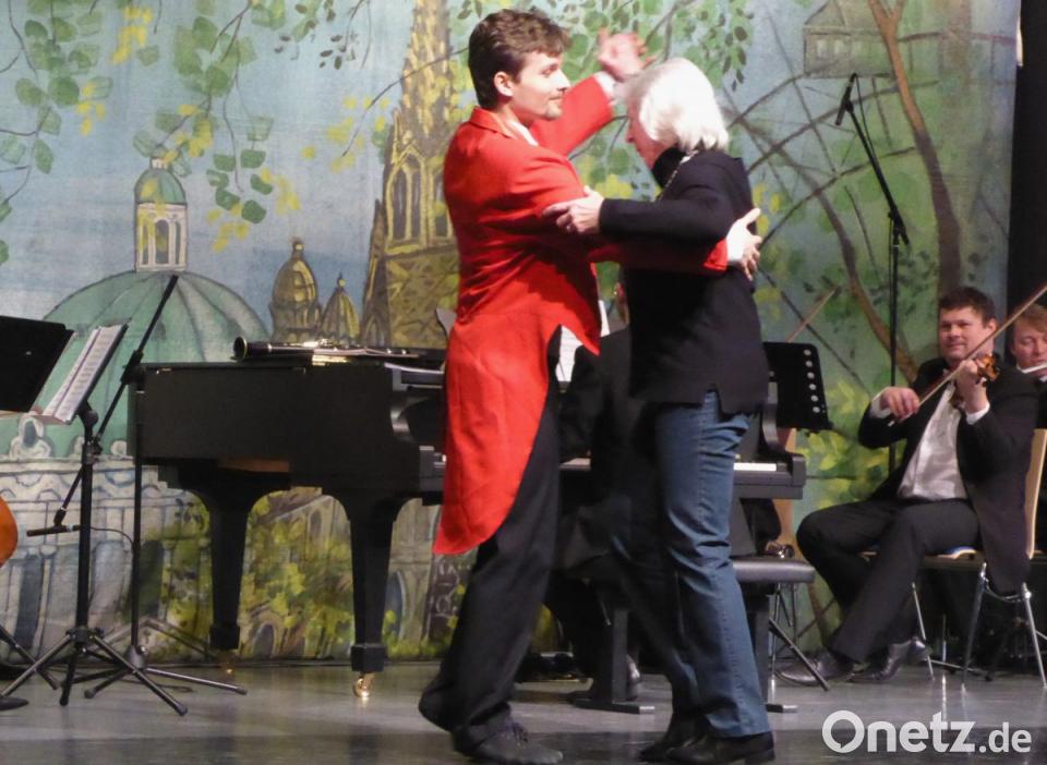 Kein Wunder, dass der Funke von den Künstlern zu den Besuchern schnell übersprang. Sie klatschten und summten mit. Olga Bezacci begab sich beim "Couplet der Adele" aus der Operette "Die Fledermaus" zu den vorderen Zuschauerrängen und kraulte einem älteren Herrn sein weißes Haar, um ihn dann in höchsten Tönen anzuhimmeln. Die Tänzer Roman und Stefan holten beim Walzer "Wein, Weib und Gesang" zwei Damen aus dem Publikum auf die Bühne und animierten weitere Paare zum Mittanzen im Saal.