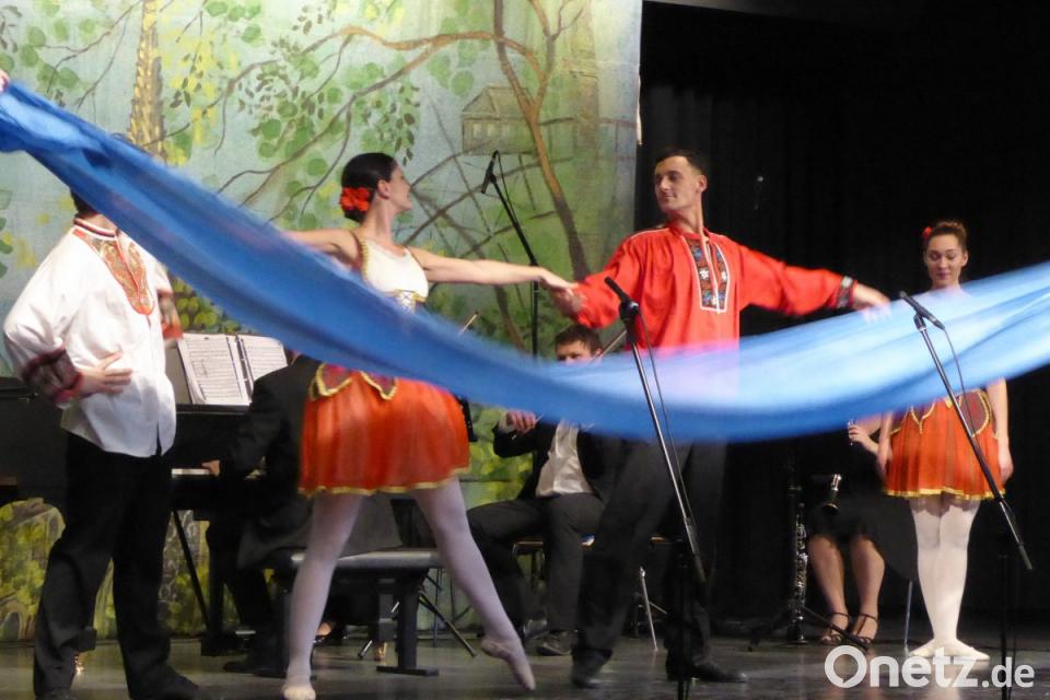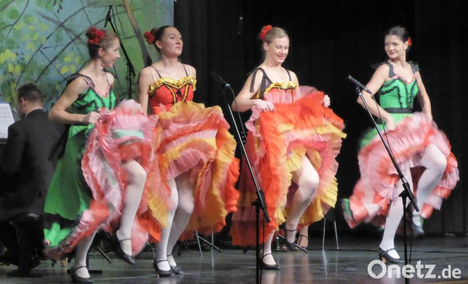 Die drei bewiesen diese Qualitäten im Solo-, Zwei- oder Dreigesang bei den schönsten Operettenliedern dieser Zeit. In prächtigen Kostümen aus ihrem umfangreichen Fundus präsentierten sich die vier Tänzerinnen und zwei Tänzer des Johann-Strauss-Balletts" von Prager Musiktheatern in ausgearbeiteten Choreographien - so weit es der Bühnenraum zuließ - und brachten Farben und Bewegung in die Aufführung. Ihre Begeisterung zeigten sie bei einer "Tarantella" mit Tambourins und die Balletteusen mit fröhlichen Juchzern bei der "Tritsch-Tratsch-Polka" und während einer der Zugaben beim "Cancan" aus "Orpheus in der Unterwelt" von Jacques Offenbach, dem "Vater der Operette". Moderatorin Ursula Meistner informierte streute immer wieder lustige Anekdoten ein. Die bekannte Zithersolistin bewies ihr musikalisches Können bei einer Kurzfassung der "Geschichten aus dem Wienerwald" und dem Marsch "Wien bleibt Wien" von Johann Schrammel. Sie glänzte mit einem zungenbrecherischen Gedicht über das Angebot auf dem Wiener Naschmarkt, bei dem sie erst der Applaus bremste, und versuchte sich als gebürtige Jenaerin im "Fiakerlied" als "echts Weaner Kindl".
