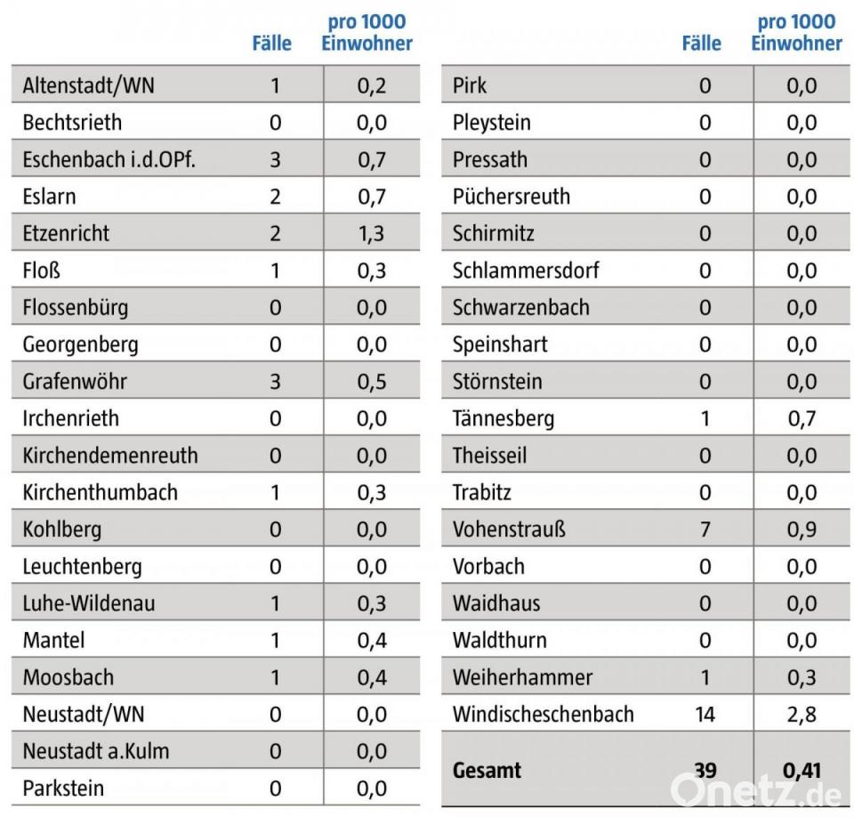 Fast überall im Landkreis sinken die Infektionszahlen in der Woche von 30. April bis 6. Mai. Nur Windischeschenbach verzeichnet einen Anstieg von 10 auf 14 Erkrankte. Das sind fast 35 Prozent der Covidpatienten im Landkreis. Bei der niedrigen Basis dieser Statistik, sollte diese Zahl jedoch nicht überbewertet werden. Ein bestimmtes Ereignis, dass zu dem Windischeschenbacher Ausreißer geführt hat, ist nicht bekannt. So weit Bürgermeister Karlheinz Budnik weiß, beschränkt sich das Infektionsgeschehen auf zwei bis drei Familien. Ein Betrieb, die Schule oder ein Heim seien nicht betroffen.