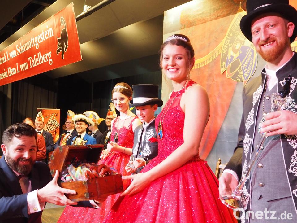 „Die Mühen und Sorgen haben sich gelohnt. Drei Jahre warten und doch noch dabei“, konnte Trescher erleichtert feststellen. Er freute sich auch, dass die befreundeten Faschingsgesellschaften aus Vohenstrauß und Windischeschenbach nach Neustadt gekommen waren. Bei der eigentlichen Inthronisation der beiden Prinzenpaare durften dann die Zepter aus Bleikristall der Firma FX Nachtmann nicht fehlen. Sie sind das Markenzeichen der Neustädter bei all ihren auswärtigen Auftritten. Die beiden Regenten betonten, dass es viel aufzuholen gibt und 50 Jahre Faschingsprinzenpaare gefeiert werden kann.