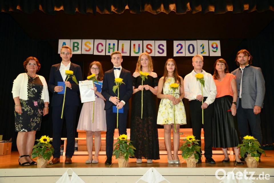 Die Klasslehrer überreichten mit Realschuldirektorin Irene Sebald und den Konrektoren Ramon Gomez-Islinger sowie Martina Fels die Zeugnisse. Für ein hervorragendes Abschlusszeugnis und als Schulbeste wurden Timo Völkl (1,08) und Evelyn Wall (1,09) besonders geehrt. Weitere herausragende Notenschnitte erreichten David Sonnek (1,27), Sina Bösl, Anja Brysch und Sebastian Reimann (alle 1,55).