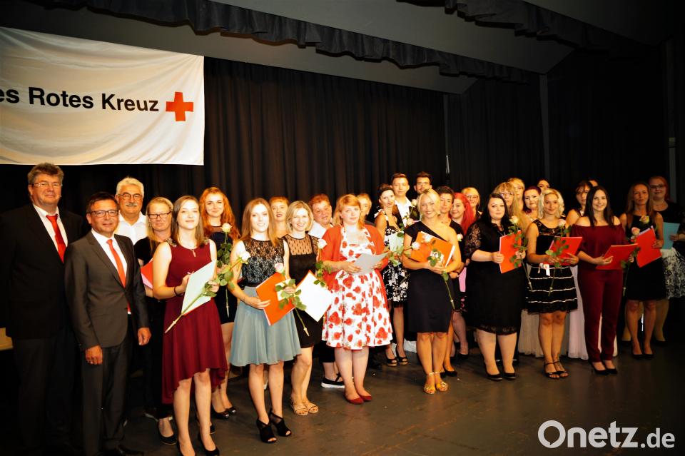 "Ihr habt drei Jahre gelernt und gebüffelt, jetzt ist es vorbei. Mit dem Abschluss habt ihr gezeigt, das euch was an dem Beruf liegt", sagte der BRK-Vertreter. Doch ausgelernt hat man nie. "Alle, die heute ihre Ausbildung hinter sich haben, sind der Garant, das wir alt werden können", sagte Landrat Andreas Meier. Der Dienst am Menschen sei kein Job wie am Fließband, so Meier. "Habt viel Freude an der wichtigsten Aufgabe an der Gesellschaft."
