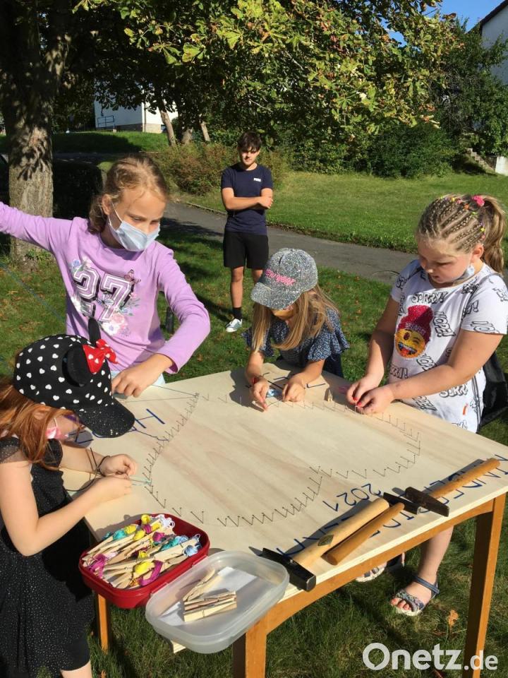 Die Kinder mit ihren Begleitern waren eingeladen, dieser Botschaft an fünf Stationen in der Stadt nachzugehen. An der Martin-Luther-Kirche wurde das Gleichniss erzählt und das Lichtlöcher-Herz erlebt. An der Grundschule lautet das Motto "Gott will durch mich Gutes tun. Gott braucht mich". Die katholische Stadtpfarrkirche St. Georg dient als Station zum Thema "Ich zünde für jemanden ein Licht an und vertraue ihn Gottes Liebe an". Das Denkmal für Augusta Sophie von Lobkowitz am Stadtplatzerinnerte daran, dass die Adelige ein Herz für den evangelischen Glauben hatte. "Gott will auch mir Gutes tun", hieß es an der Eisdiele, an der die Teilnehmer einen Gutschein einlösen durften. Am Kirchhof der Martin-Luther-Kirche gestalteten die jungen Neustädter zusammen ein Herz aus Nägeln und bunten Fäden. Unterwegs malten die Kinder mit Straßenmalkreide Herzen auf den Weg, um die Botschaft in die Stadt zu tragen. Insgesamt beteiligten sich an den drei Tagen 29 Kinder mit 11 Begleitern.