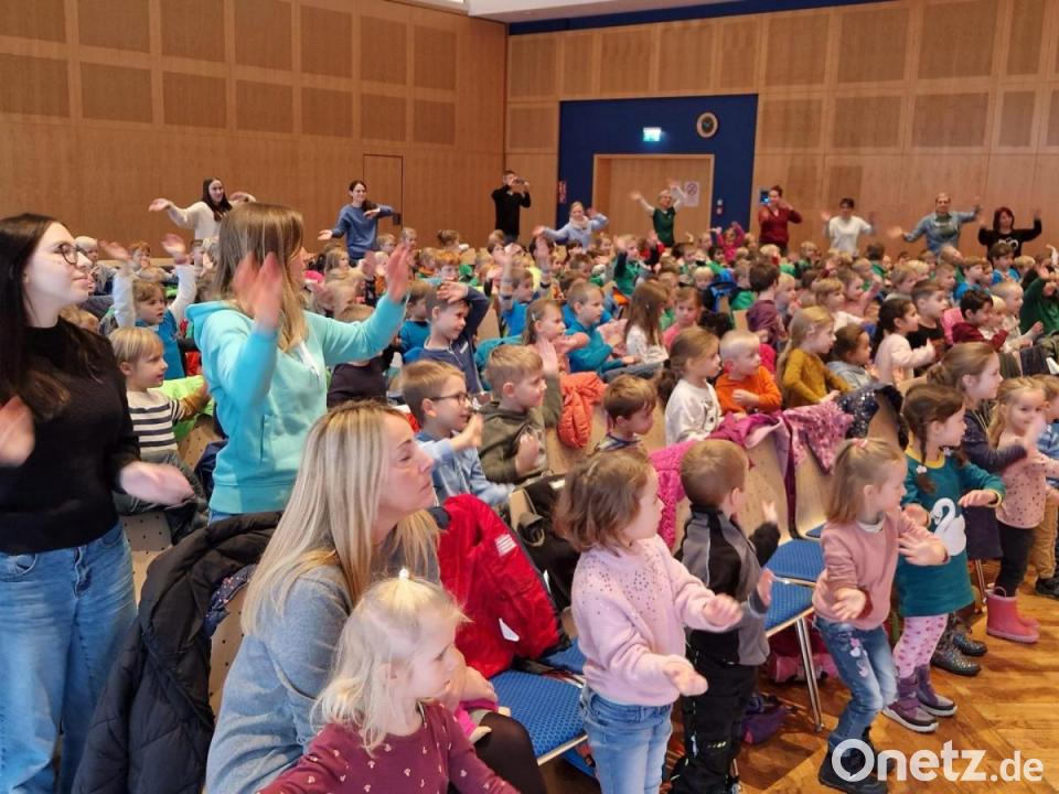 Das AOK-Puppentheaterstück „Jolinchens Seereise“ hat Station in der Stadthalle Neustadt gemacht und mehr als 250 Kita-Kinder und deren Erzieherinnen begeistert. Schon bei der Aufwärmübung „Löwenjagd“ vor dem Theaterstück gaben die Mädchen und Jungen alles, um dann gespannt dem 20-minütigen Stück zu lauschen. Dabei war vor allem das gesunde Frühstück wichtig, das Drachenkind Jolinchen und seine beste Freundin Henrietta brauchen, um in See stechen und Abenteuer erleben zu können. Auch beim Abschlusstanz flogen die Arme und Beine der kleinen Besucher nur so. Jürgen Spickenreuther, Direktor der AOK Nordoberpfalz ließ es sich nicht nehmen, die Kinder willkommen zu heißen und auch Sebastian Dippold, der Bürgermeister von Neustadt richtete launige Grußworte an sie.