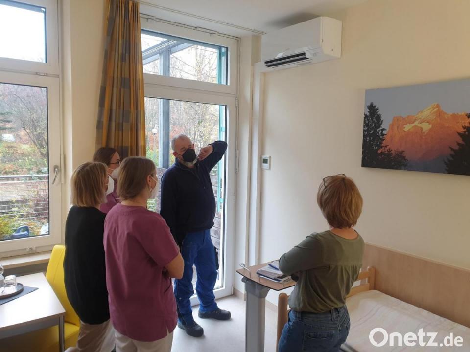 „Aufgrund von Übelkeit, Schwäche und Inappetenz können die Menschen, die durch das Schwitzen verlorene Flüssigkeit, auch kaum wieder aufnehmen“, sagt Susanne Wagner, die Leiterin des Hospizes. Das Hospiz ist im 1958 erbauten Gebäude des ehemaligen Neustädter Krankenhauses beheimatet. Die Räume im Erdgeschoss wurden 2008 im Zuge der Eröffnung der Palliativstation modernisiert, aber nicht energetisch saniert. Vor allem an warmen Tagen heizen sich deshalb die Zimmer stark auf.
