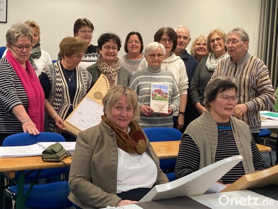 Die gebürtige Neustädterin Maria Hecht (in der Mitte mit Pralinenschachtel) ist mit 80 Jahren noch sehr sportlich und musikalisch. Sie engagiert sich auch in der Veeh-Harfen-Gruppe der Musikschule. Bei den außermusikalischen Aktionen der Institution hilft sie ebenfalls an vorderster Front mit.
