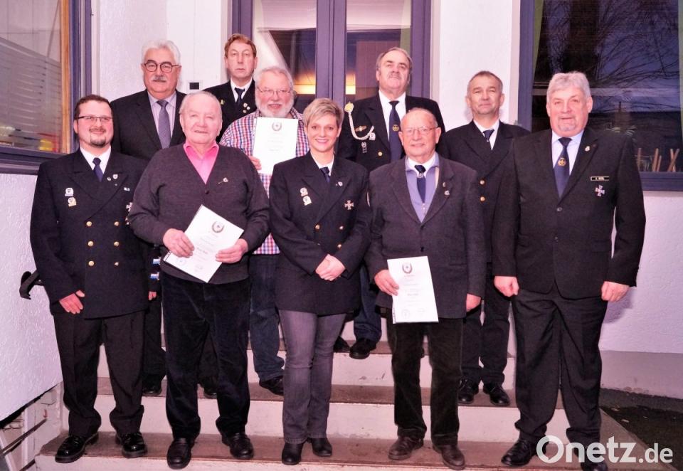 10 Jahre: Bernhard Lang, 15 Jahre: Gerhard Deinzer und Michael Hierold. 30 Jahre Konrad Kraus, 35 Jahre Oskar Schwarz und 40 Jahre Johann Confal. Die neugeschaffene Auszeichnung für Fahnenträger erhielt in Silber Henry Rehfeldt. (arw)