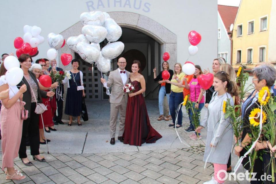 Beide lernten sich vor einigen Jahren durch ihr gemeinsames Hobby „Auto“ kennen. Eine Autopanne brachte schließlich die beiden endgültig zusammen. Nach der offiziellen Eheschließung wurde das Brautpaar vor dem Rathaus von Arbeitskollegen und Bekannten erwartet. Kollegen und Kolleginnen des Bräutigams von der Firma Vantage Film GmbH in Weiden und Kolleginnen sowie der Chef der Praxis für Allgemeinmedizin Dr. Neumann am Stadtplatz, in der die Braut beschäftigt ist, bildeten mit Luftballons in Herzform und Sonnenblumen ein Spalier.