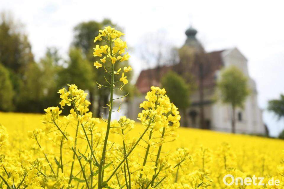 Frühling: Farbe löst das Einheitsgrau des Winters ab. Wie hier vor dem Kloster St. Felix in Neustadt/WN leuchten Felder weithin in Gelb und melden: Der Winter ist endgültig vorbei.