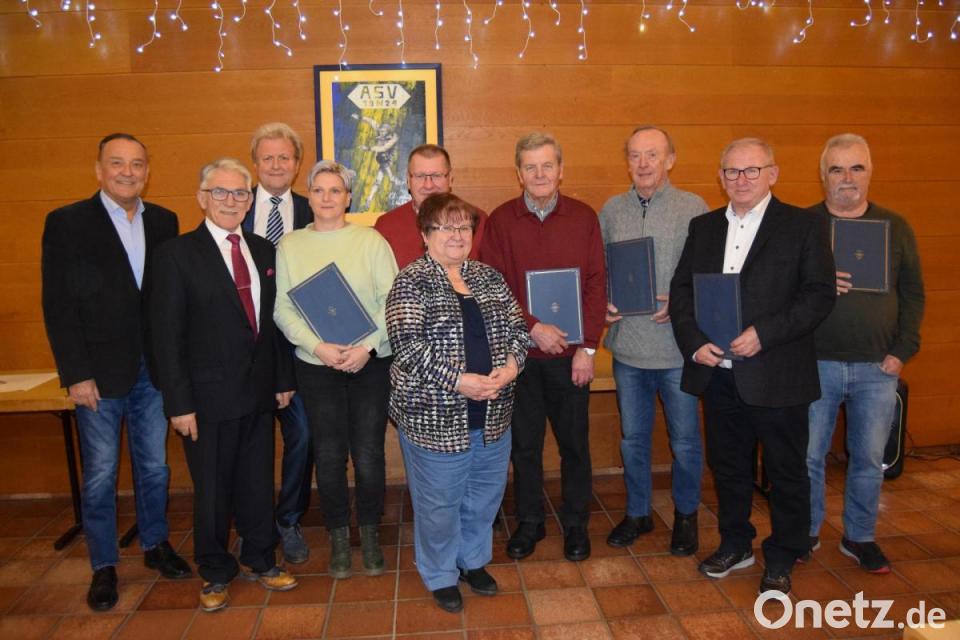 Erika Kistenpfennig ist 50 Jahre ASV-Mitglied und sie erhielt neben Urkunde auch die goldene Ehrennadel verliehen. Herbert Albl und Siegfried Pöllmann sind 60 Jahre dem Verein treu verbunden und waren lange Jahre aktive Fußballer, Siegfried Pollmann glänzte als versierter Torwart, zudem ist er immer noch ein begeisterter Tennisspieler. Mit Heinrich Maier wurde für 65 Jahre Mitgliedschaft ein Mann geehrt, der in seiner Jugend erfolgreiche Fußballerjahre als Torjäger beim ASV verbrachte.