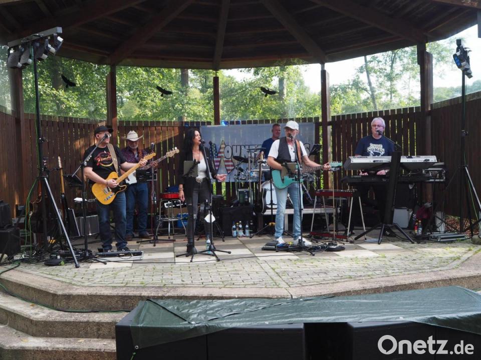 Alles war perfekt, doch dann folgten erst leichte Regentropfen, später etwas stärkerer Regen. Die Musiker waren geschützt unter dem Pavillon. Die Besucher bekamen es voll ab, es sei denn, jemand war vorsichtig und hatte einen Regenschirm mitgebracht. Trotz dieser nicht geraden idealen Voraussetzungen ließen sich die gut aufgelegten Musiker nicht aus der Ruhe bringen und sorgten für ausgezeichnete Stimmung.