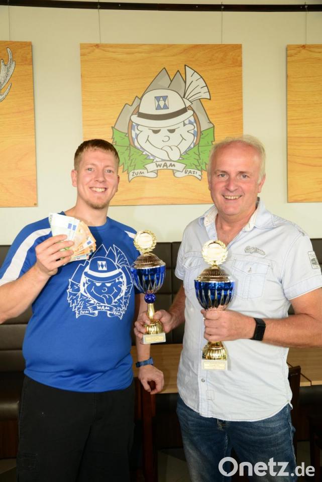 Stadthallenpächter Wolfgang Schlitter und Gastwirt des „Zum WAM Bazi“ überreichte am Montagabend die glitzernden Preise für Platz 1 beim Publikumsentscheid und dem gleichen Votum bei der offiziellen Jury. Schlitter hält stolz die 550 Euro in der Hand, die der „Aktion Lichtblicke“ zu gehen. Wismann hat mit der spontanen Spende seiner Siegprämie in Höhe von 200 Euro dazu nicht unwesentlich beigetragen.