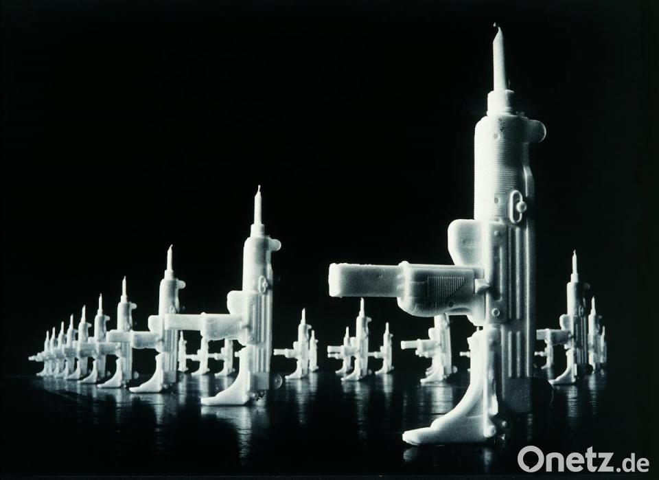 Die Vielfalt der Herde zeigt Schmidt in mehr als 24 Exponaten. „Da sind auch viele Dinge dabei, die es bisher nicht zu sehen gab“, verspricht er. Die Zeitspanne von 1983 bis 2021 wird abgedeckt, die Bilder zeigen vergangene Kunstaktionen wie beispielsweise „Mutige Hasen“ (Stempelung auf Klebeetikett), den „Hasenpanzer“ (Stempelung auf Schwarzpaier), „London walk“ (Tintenstrahldruck auf Fotopapier) oder den Bronzeguss „Brassing the city“.