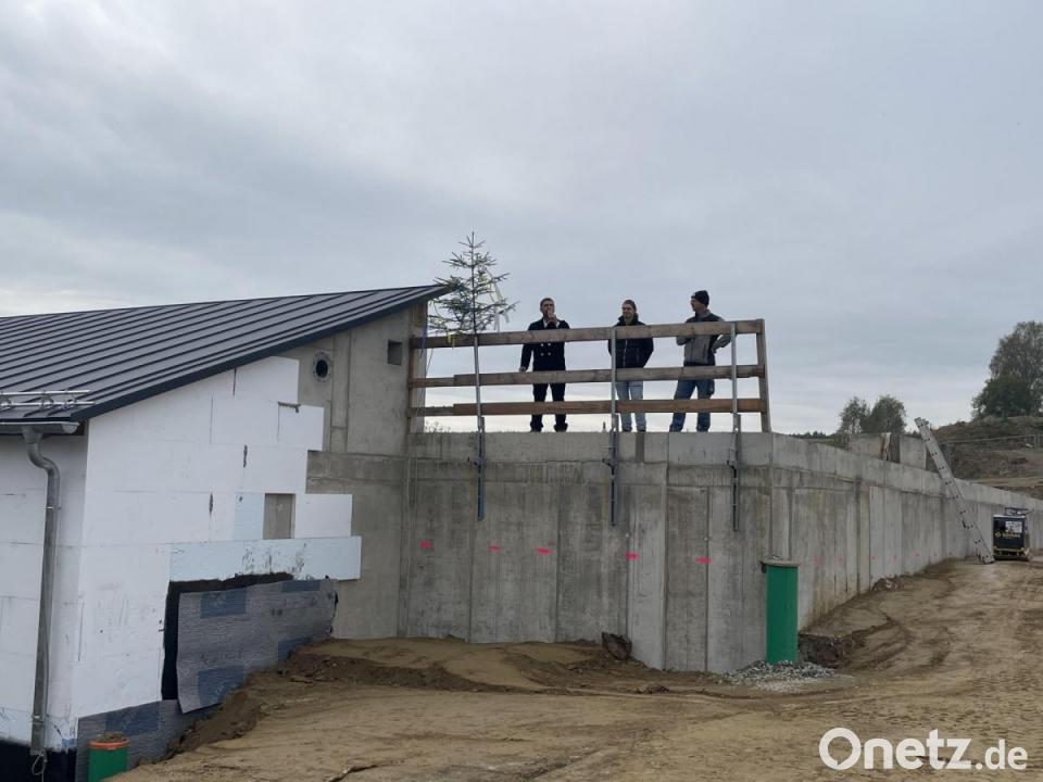 Spatenstich war im März, mit den Arbeiten läge man nach wie vor im Zeitplan. „Die Dichtheitsprüfung der beiden Kammern sowie die Zimmerer- und Dachdeckerarbeiten sind abgeschlossen“, berichtete Zwick, „die Dämm- und Abdichtungsarbeiten am Eingangshaus wie auch die Auffüllung der Wasserkammern außen laufen“.