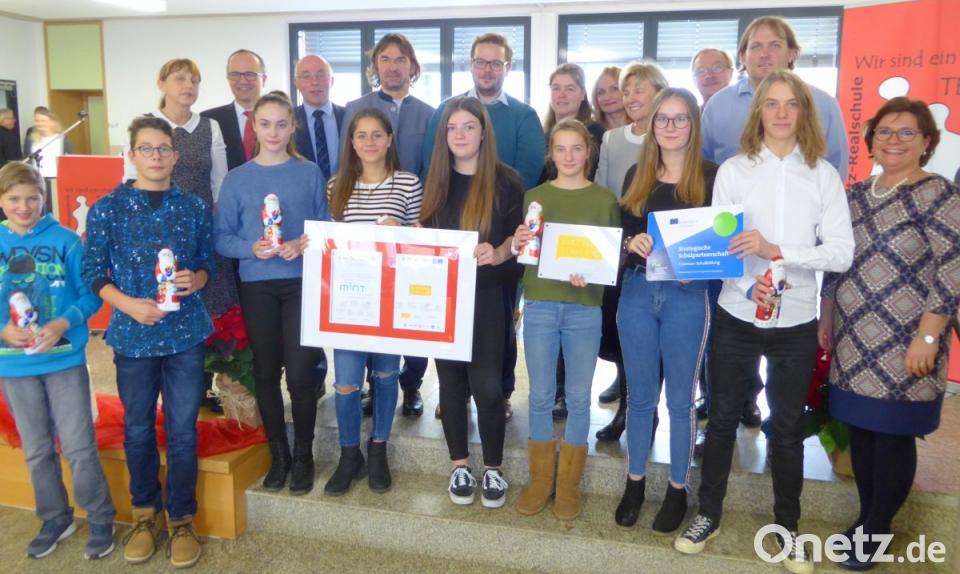 Wie gut Schulpartnerschaft schon funktioniert, stellten die Schüler Anna-Lena und Andreas in lockerer Moderation vor. Sie erzählten begeistert von fünf Tagen in Tschechien und interviewten dabei auch Mitschüler in der Aula: die tolle Aufnahme bei den Gastfamilien, Besichtigungen und Freizeitangebote, Experimente und Exkursionen zu den Schwerpunkten Boden und Wasser. Im April wird ein Gegenbesuch in Neustadt stattfinden; im Juni wird nach Lembach gefahren. Zum Schluss überreichte Kinzinger an die Schule die Urkunden über die Aufnahme ins „Erasmus+“-Programm, die Rezertifizierung des Projekts „Mint-freundliche“ Schule und die Verleihung des Labels „Digitale Schule“.