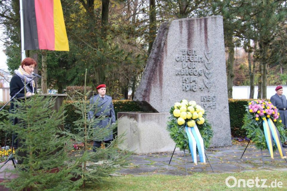 Es solle ein stiller Tag sein, an dem wir bewusst innehalten und der Opfer von Krieg und Gewaltherrschaft gedenken. “Jedoch soll er auch in der Gegenwart zum Frieden mahnen.“ In ihrer Rede am Ehrenmal richtete Kippes den Blick auf die Tausenden Flüchtlinge an der belarussisch-polnischen Grenze, die ihre Länder verlassen haben, in der Hoffnung auf ein lebenswertes Dasein in Sicherheit und Frieden. „Helfen wir ihnen“, forderte sie. Sie seien die Stimmen der Gegenwart, denen wir Gehör schenken müssen, genauso wie den mahnenden Stimmen der Eltern, Großeltern und Urgroßeltern, die nie verstummen dürften, damit Kriege der Vergangenheit angehörten. „Hören wir nicht auf die immer lauter werdenden Stimmen, die Ängste schüren und Gräben vertiefen. Lassen sie uns erkennen, dass unsere Nachbarn Freunde und keineswegs Feinde sind“.