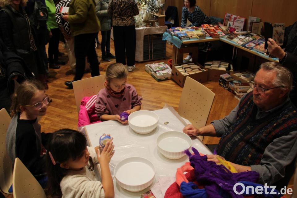 Anita Köstler ist seit vielen Jahren mit ihren Filzarbeiten vertreten. „Sie zählt zu den besten Filzerinnen in Europa“, klärte Ehemann Meinhard auf. Er filzte mit Kindern kleine Kunstwerke und verteilte Gutscheine fürs Sibyllenbad. Schmuck und altes Handwerk waren ebenso im Angebot wie Zubehör für die Weihnachtskrippe und Weihnachtsschmuck. Gestecke, Adventskränze, Lampen, Kerzen und Karten stimmten auf die Weihnachtszeit ein. Ebenso angeboten wurden Kunstwerke aus Keramik, Holz und Metall für Haus und Garten sowie Scherenschnitte und Miniaturmechanik.