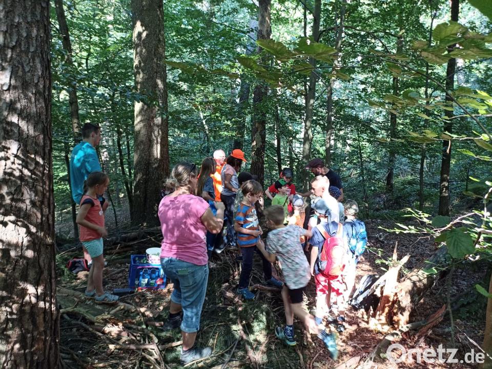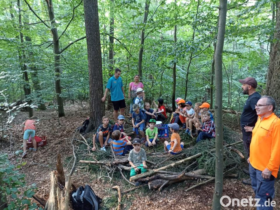 Beinahe 20 Kinder zwischen sechs und elf Jahren machten sich an das Werk, um gemeinsam mit Förster Andreas Arnold, Johann Bäumler von der Corporationswaldung und sowie den Betreuern des Kinderferienclubs Neustadt ein „Adlernest“ aus Zweigen, Ästen und Stämmen zu bauen. Von Anfang an packten alle Kinder kräftig mit an.