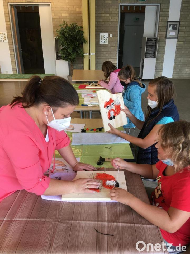 Kann man mit Nägeln und Garn ein kleines Kunstwerk erstellen? Natürlich! Das wissen zumindest die Kinder, die im Ferienclub waren. Zunächst durften sich die Buben und Mädchen bei dieser Aktion im Ferienprogramm eine Vorlage aussuchen. Dabei standen als Motive ein Fuchs, Ball, Apfel oder ein Einhorn zur Verfügung. Dieses Blatt wurde nun ausgemalt und konnte später als Gedankenstütze verwendet werden.