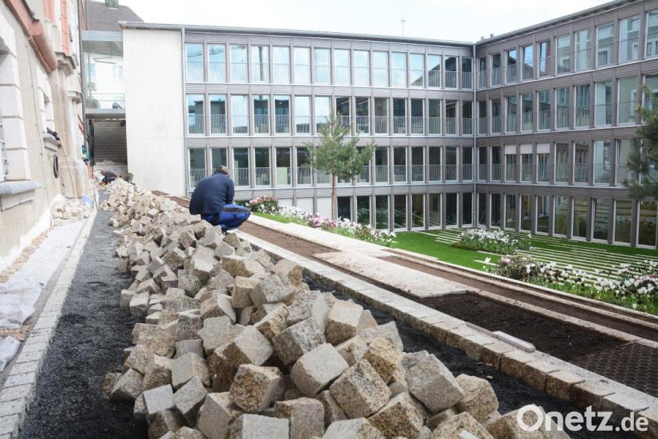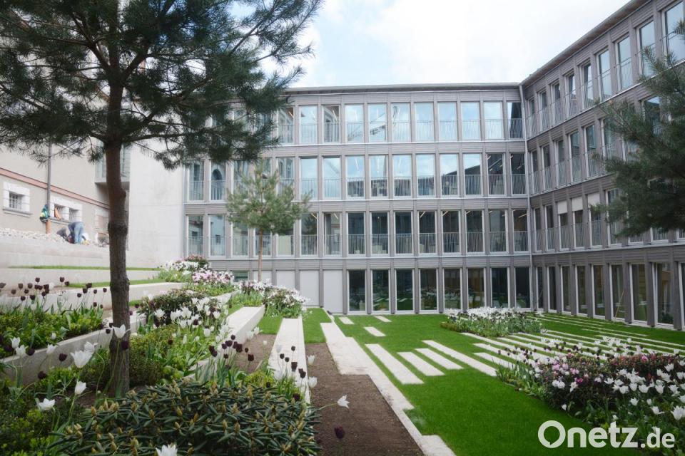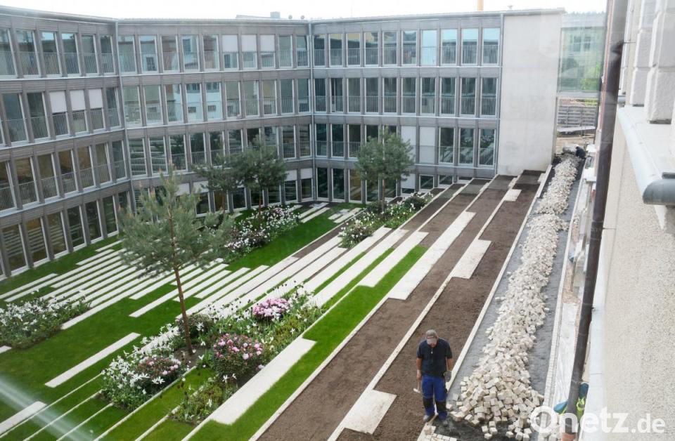 Der Neubau, in dem seit März rund 100 Beschäftigte des Landratsamtes arbeiten, wurde laut Mitteilung barrierefrei und klar strukturiert gestaltet. Blickfang ist der neu entstandene Innenhof mit großen Sitzstufen aus Granit, Bäumen und auch sonst viel "Grün". Die Fläche steht wie der nahe Barockgarten auch für die Öffentlichkeit als Ruhe-Oase zur Verfügung und bietet sich für kulturelle Veranstaltungen an.