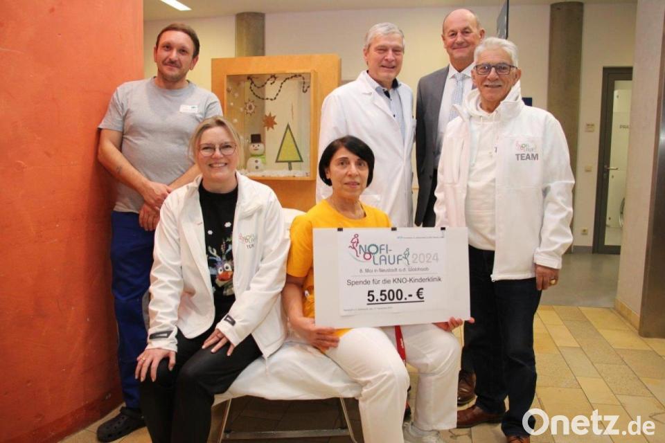 Auch Landrat Andreas Meier ließ es sich nicht nehmen, bei der Scheckübergabe vorbeizuschauen. Für ihn seien solche Veranstaltungen ein Lichtblick in Zeiten von überwiegend negativen Nachrichten: "Es ist nicht alles dunkel", sagte er. Der Neustädter Bürgermeister Sebastian Giering schließt sich an. Auch wenn Veranstaltungen wie der Nofi-Lauf die jeweils gastgebende Stadt enorm fordern, so komme es – wie die Spendenübergabe zeige – am Ende doch immer bei den richtigen Leuten an.