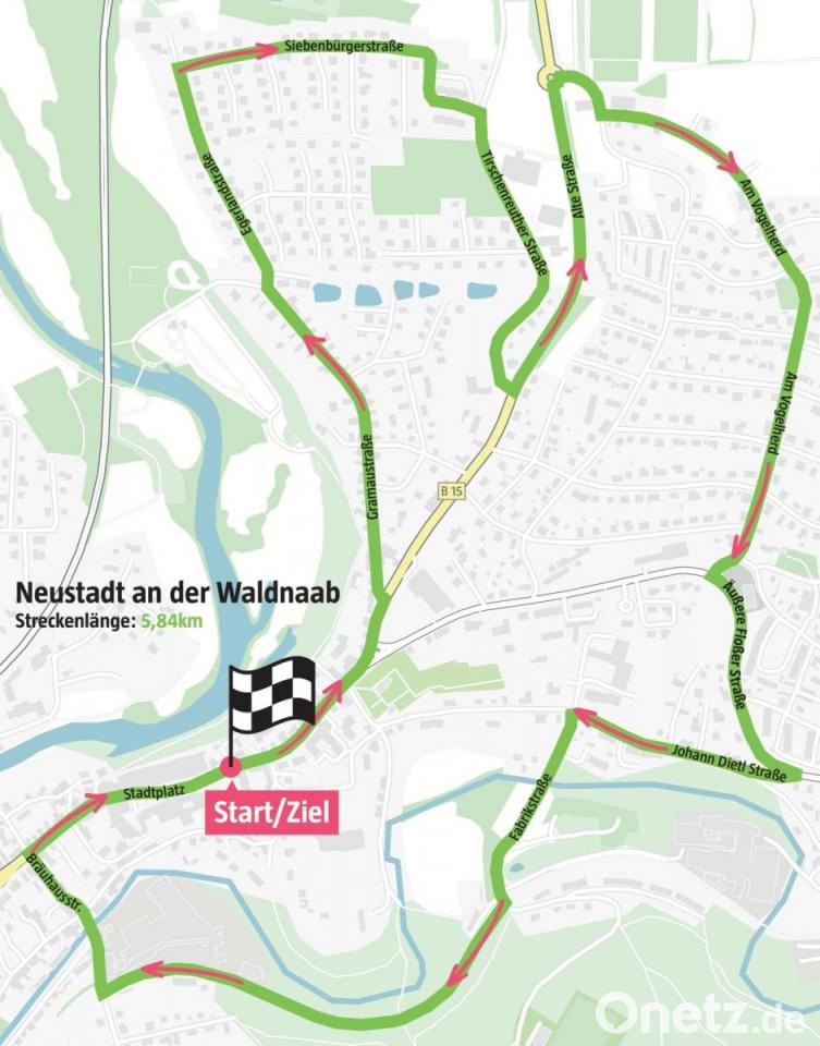Insgesamt sind am 8. Mai 5,84 Kilometer zu bewältigen. Das ist für jeden machbar. Der Start ist wie immer am Stadtplatz. Von dort geht's Richtung Friedhof und dann weiter durch die gesamte Gramau. Um die fehlenden Kilometer des Schulhügels wettzumachen, verläuft die Strecke vom Gramau-Ende über die Tirschenreuther Straße wieder Richtung Innenstadt und von dort auf der B 15 zurück zum Kreisverkehr. In der Straße "Am Vogelherd" geht es leicht bergauf und dann wieder bergab bis in die Äußere Flosser Straße.