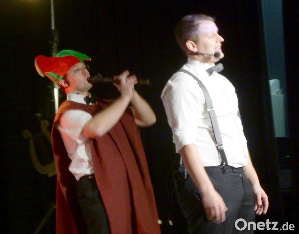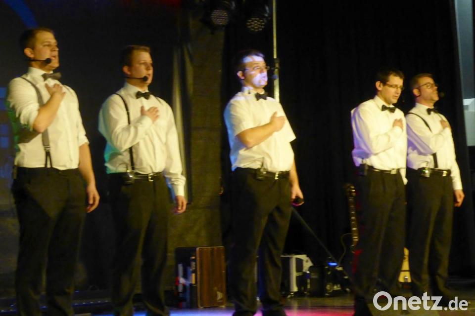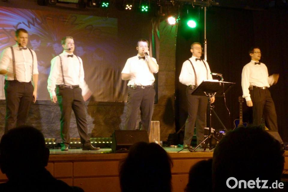 Bei den erlesenen Arrangements standen die einzelnen ausgebildeten Stimmen zuweilen gleichberechtigt nebeneinander, hauptsächlich begleiteten sie jedoch mit beeindruckendem A-capella-Gesang den jeweiligen Leadsänger. Aber auch an diversen Instrumenten wie Keyboard, Gitarre, Mandoline, Akkordeon oder der mittelalterlichen Cister streuten die fünf Musiker abwechslungsreich immer wieder ihre Talente ein. Gewürzt wurde das Ganze mit Licht- und Nebeleffekten, mit kabarettistischen Einlagen, Verkleidungen und witziger Moderation.