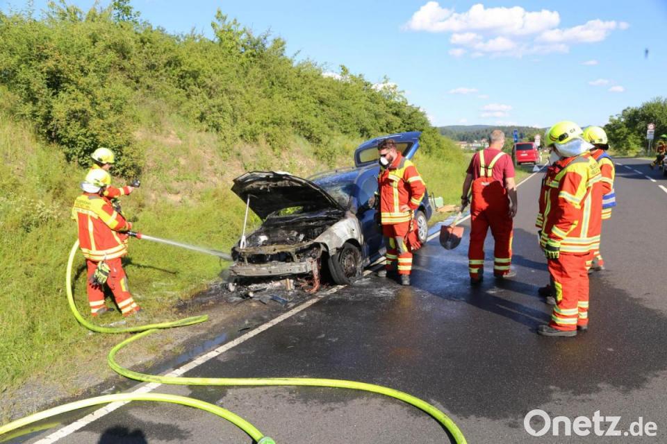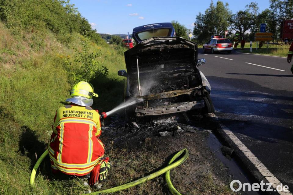 Das Fahrzeug war jedoch nicht mehr zu retten und brannte komplett aus. So blieb der alarmierten Feuerwehr nichts weiter übrig, als das brennende Wrack zu löschen. Während der Löscharbeiten musste der Autobahnzubringer zur A 93 kurzzeitig gesperrt werden. Am Fahrzeug entstand Totalschaden. Es musste abgeschleppt werden.