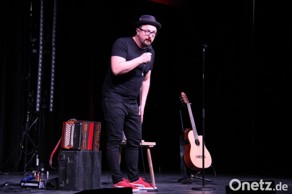 „Servus“ schreit der Binser, wie er von seinen Fans liebevoll genannt wird, als er die Bühne in der ausverkauften Stadthalle betritt. Das Publikum klatscht begeistert, und schon legt der Rundinger Musikkabarettist in seinen Markenzeichen schwarzer Hut, schwarzes Shirt, schwarze Jeans und rote Sportschuhe auch schon los wie die Feuerwehr.