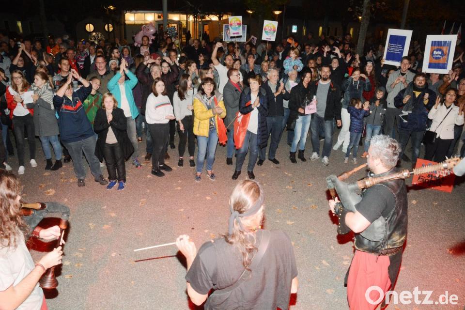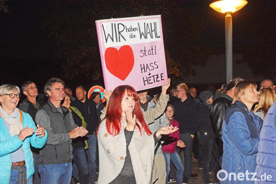 Die Menschen hielten Plakate hoch. Zwischendrin standen ganze Familien, junge Leute, engagierte Frauen, auch ältere Herren. Auf den Transparenten stand: "Wir haben die Wahl: Herz statt Hass und Hetze" sowie "Kein Platz für Nazis".