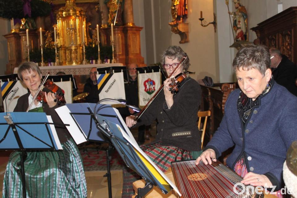 Ein echter Ohrenschmaus war die Musik des Trios „Kreizderquer“ aus Windischeschenbach. Michaela Gaach, Johanna Schmid und Monika Burkhardt sorgten mit zwei Geigen und Zither mit einigen Instrumentalstücken und vor allem mit ihrem reinen, dreistimmigen Gesang für einen der musikalischen Höhepunkte beim Lied „Maria durch ein Dornwald ging“. Mit dem Lied „Jetzt ist sie da“ und der Hymne an die „Christrose“ hatten die „Zupfer Moidl“ Waltraud Neubauer-Zupfer und Renate Zupfer-Villas eine Premiere. Sie sangen die beiden Lieder zum ersten Mal öffentlich. Als voller Klangkörper erklangen die Stimmen des Kirchenchors St. Georg unter der Leitung von Harald Bäumler von der Empore aus. „Komm, du Heiland aller Welt“ und „Macht die Tore weit“ intonierten die Sänger.