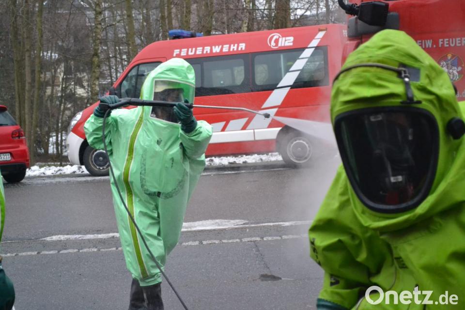 Sie haben jetzt neue Spezialisten für den Einsatz mit diesen Anzügen ausgebildet. Insgesamt zwölf Stunden dauerte der Lehrgang für die acht Teilnehmer. Das sehe für Außenstehende relativ kurz aus, gibt der Neustädter Ausbildungsleiter Marco Spranger direkt zu und erklärt sofort: „CSA-Träger kann allerdings nur werden, wer Atemschutzgeräteträger ist, und damit den Umgang mit Atemmaske und Luftflasche bereits erlernt hat. Wir vermitteln hier nur noch den Umgang mit den Anzügen.“