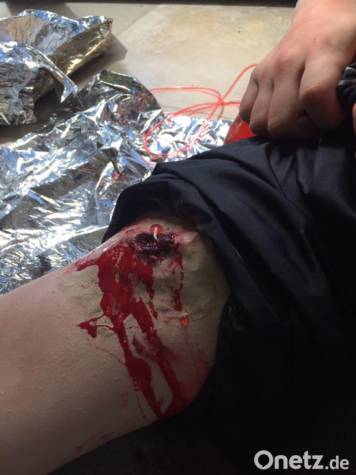 Am Nachmittag stand eine Sichtungsübung mit einem Horrorszenario an. Ein Amokläufer hat in der Mittelschule eine unbekannte Zahl von Opfern hinterlassen. Die perfekt geschminkten Mimen, etwa 30 schwer- oder minderschwer Verletzte mit zum Teil hässlichen Wunden mussten von den Teilnehmern in kurzer Zeit behandelt werden. Erschwerend, aber realistisch kamen lautes Kindergeschrei und Übungsrauch dazu. Herumliegende Waffen und Geschosshülsen perfektionierten die Amok-Atmosphäre.
