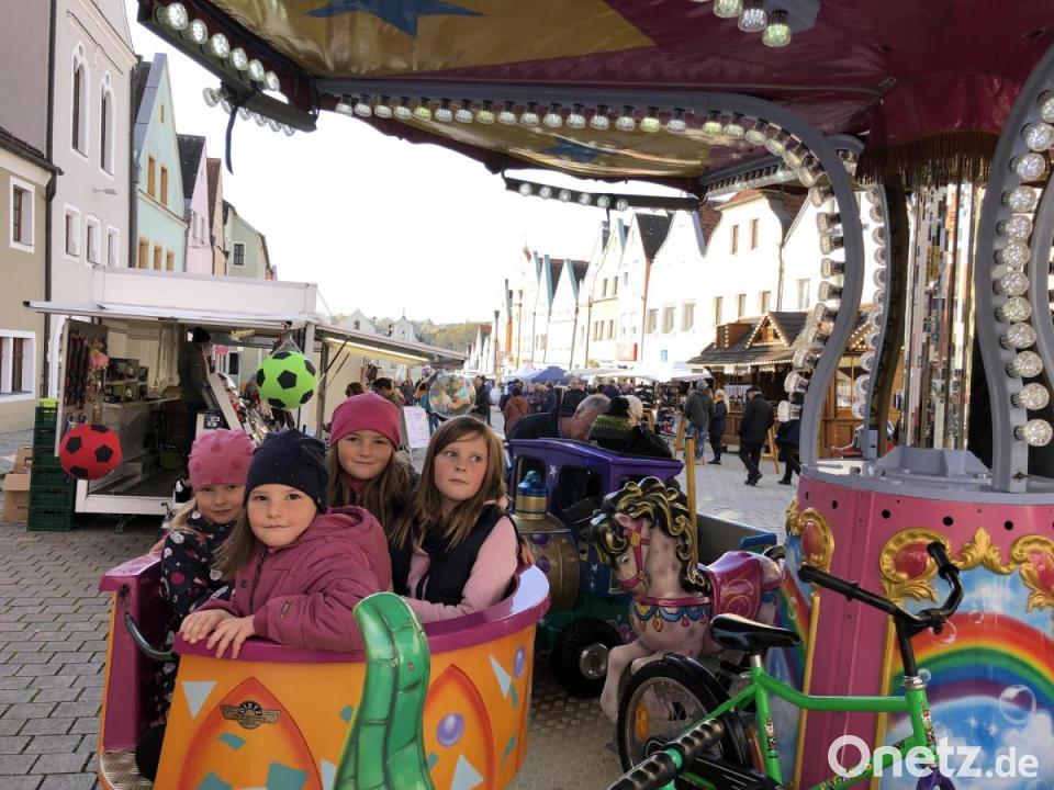 Nach einem langsamen Beginn nach dem Kirwa-Mittagessen zog das tolle, sonnige Wetter dann doch noch zahlreiche Besucher an, die über den Markt schlenderten. Wer Hunger hatte, konnte sich stärken, Süßigkeiten waren begehrt und es gab neben Spielsachen auch warme Socken für die kommende kalte Jahreszeit. Auch die Kinder hatten wieder ihre Freude mit dem Kinderkarussell vor dem Alten Schloss.