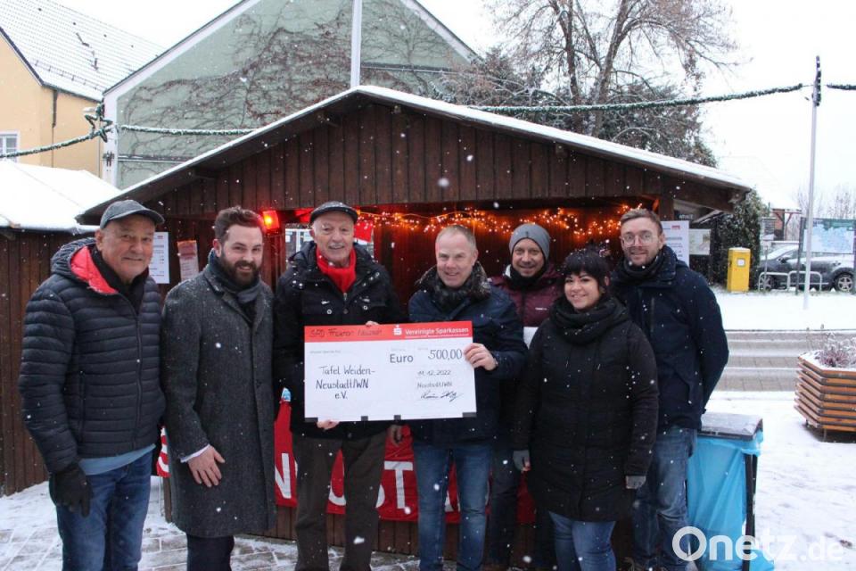 Die Neustädter SPD und die SPD-Stadtratsfraktion haben bewiesen, dass ihnen soziale Engagement sehr wichtig ist. Beim Adventsmarkt der Vereine wurden Tornadokartoffeln und Apfelsaft aus Neustädter Äpfeln angeboten. Als besonderer Gast wurde Josef Gebhardt, Vorsitzender der Weidener Tafel, begrüßt. Auch viele Neustädter und Flüchtlinge aus der Ukraine versorgen sich dort mit Lebensmitteln. Fraktionssprecher Rainer Hetz überreichte mit der Fraktion, dem Ortsverein und Bürgermeister Sebastian Dippold 500 Euro, teilte die SPD mit. „Dieses Geld wurde sonst für Weihnachtsgrußkarten verwendet, ist aber so sinnvoller angelegt und kommt den Menschen direkt zu Gute“, begründete Hetz bei der Übergabe. Bei der Verteilung von Nikolausgeschenken an Kinder von Bedürftigen haben Stefanie Färber und Dippold bei der Tafel an der Ausgabestelle in Weiden auch noch tatkräftig mitgeholfen. Gebhardt dankte für diese Hilfe und den finanziellen Beitrag.