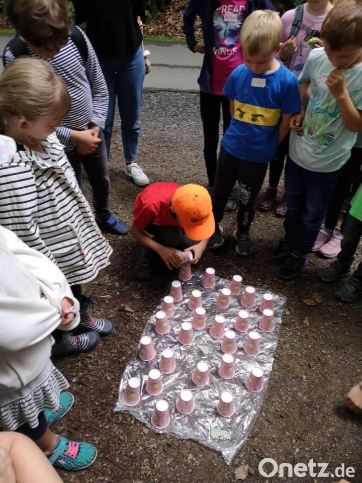Sehr gut kam dann auch das Naturmemory an, bei dem unter Bechern verschiedenste im Wald gefundene Materialien versteckt wurden. Dann war es aber höchste Zeit für den Rückweg, um dem aufziehenden Gewitter aus dem Weg zu gehen.