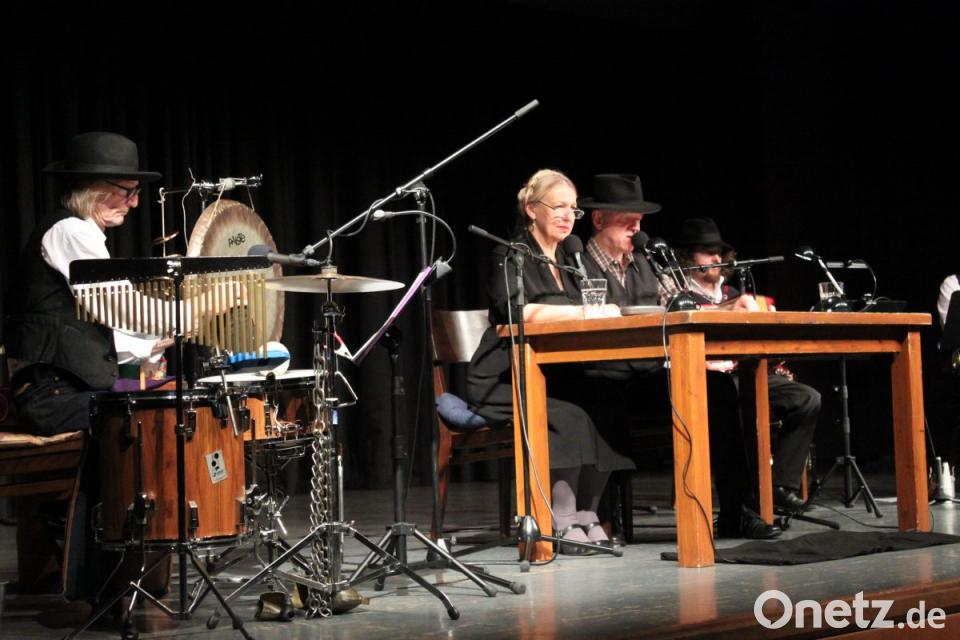 Großer, minutenlanger Applaus brandet auf. Den haben sich die beiden hervorragenden, wandlungsfähigen Schauspieler verdient. Verdient haben ihn auch das „Art Ensemble of Passau“ mit Leo Gmelch (Tuba, Posaune), Peter Tuscher (Trompete, Florian Burgmayr (Akkordeon, Tenorhorn), von dem auch die Kompositionen stammen, und Yogo Pausch (Schlagwerk und Geräusche). Mit teils schrägen Tönen, überraschenden Geräuschen, sentimentalen Walzern und schaurig-schönen Instrumentenjodlern schaffen sie eine stimmungsvolle Atmosphäre um die Handlung.